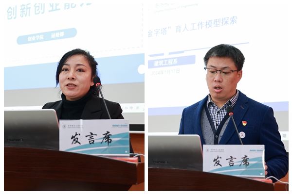 创业学院逯娅娜老师分享的在FT课程建设模式下培养学生创新创业能力的实践经验,建筑工程系党总支副书记刘贤鹏介绍的基于实践的“金字塔”育人工作模型的探索成果,均体现出深入贯彻落实学校“培养应用型、职业性的创业者”的教育方针和“三全育人”的理念。