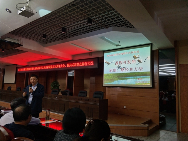 为进一步做好迎评促建工作,10月1日中午,在学院骨干研修班成员集中收看庆祝中华人民共和国成立70周年大会、阅兵式和群众游行实况结束后,理事长曹勇安教授作《课程开发原则、路径和方法》讲座。强调落实党的教育方针,需要根据学校办学层次定位,按照国家专业教学标准,形成专业人才培养方案,确定单元课程教学目标,并着重提出并阐述了课程开发的基本程序。