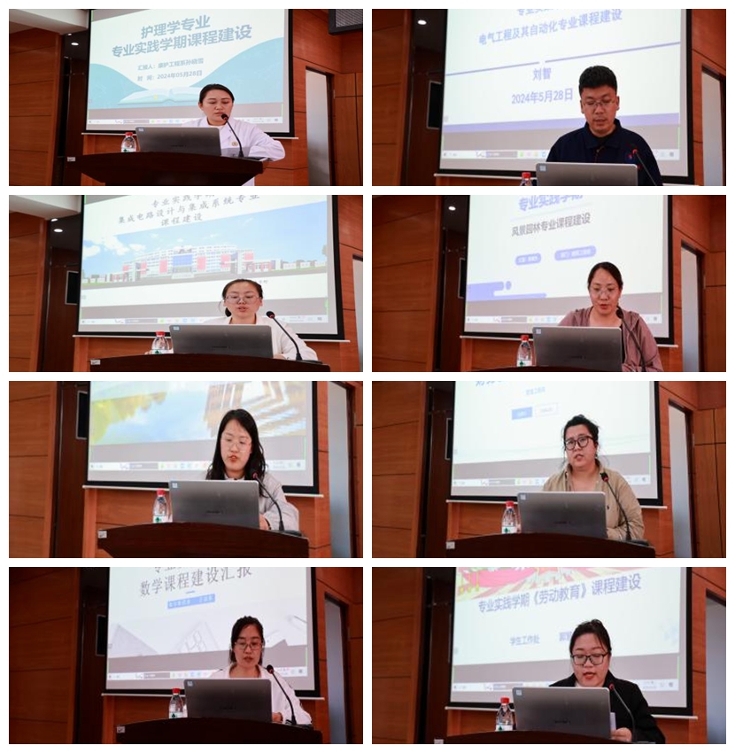 汇报中,各专业长基于前期“访企课改”及调研结果,围绕“一系一品,一专业一特色”,凝炼专业实践体系及特色成果,对专业实践学期进行了系统化、综合性的设计,阐明建设思路和主要目标任务,对去年的专业实践学期进行分析,突出优化调整,进行数智化课程建设。课程长从“双服务”角度,围绕服务专业人才培养、学生成长、促进教师成长等方面,阐述专业实践学期规划及举措。