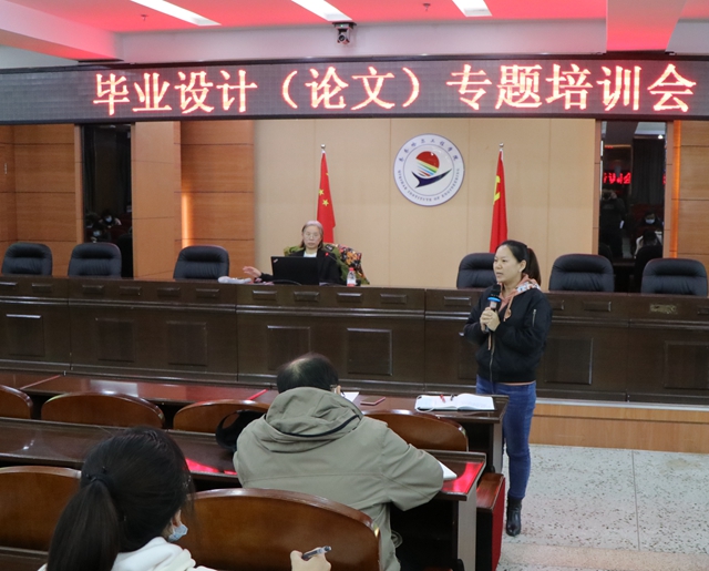 为加强本科毕业设计(论文)的规范化管理,提高学生毕业设计(论文)质量,11月18日,邀请学校学科带头人、校级督导刘玉洁教授,在图书馆601报告厅举办了本科毕业设计(论文)培训会。学校毕业设计(论文)指导教师参会。培训会由教务处副处长张莹主持。