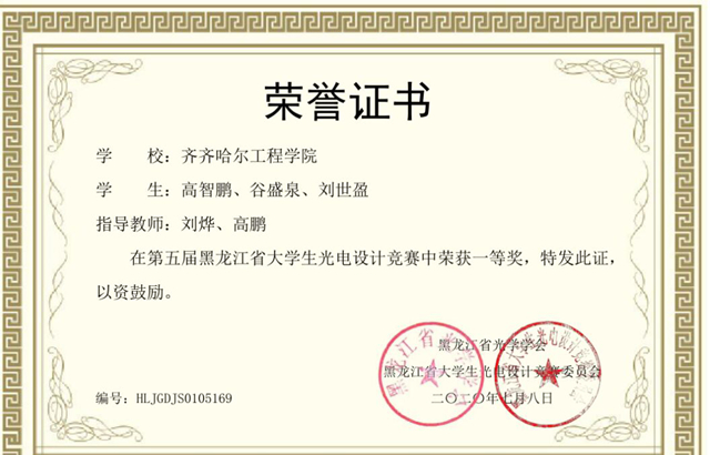 由黑龙江省光学学会与黑龙江省大学生光电设计竞赛委员会于6月1日-10日举办的第五届黑龙江省大学生光电设计竞赛(全国大学生光电设计竞赛分赛区)结果揭晓,我校机电工程系电气工程及其自动化专业派出的11个学生团队全部获奖。其中,由电气本172班高智鹏、谷盛泉、刘世盈同学组成的参赛团队,以所设计的“太阳能测温打卡智能机器人”项目获得竞赛一等奖,其他10个学生参赛团队获得竞赛二等奖。