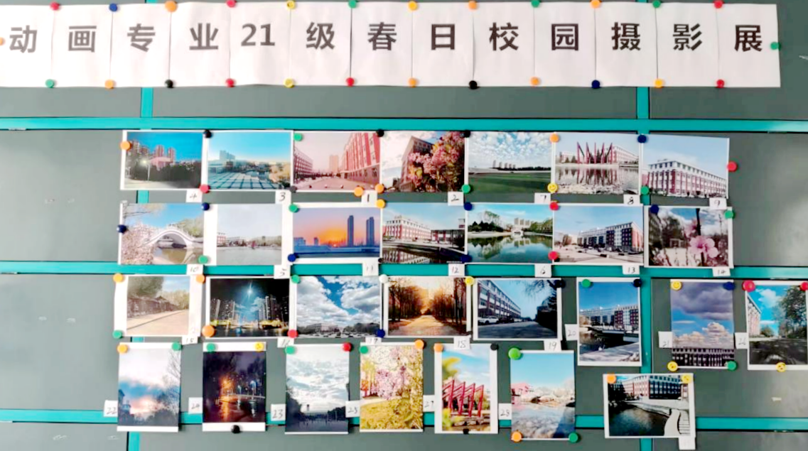 5月30日上午,动画专业2021级在一号教学区A区4层展示墙展出春日校园摄影作品。动画专业2021级全体学生参加活动。