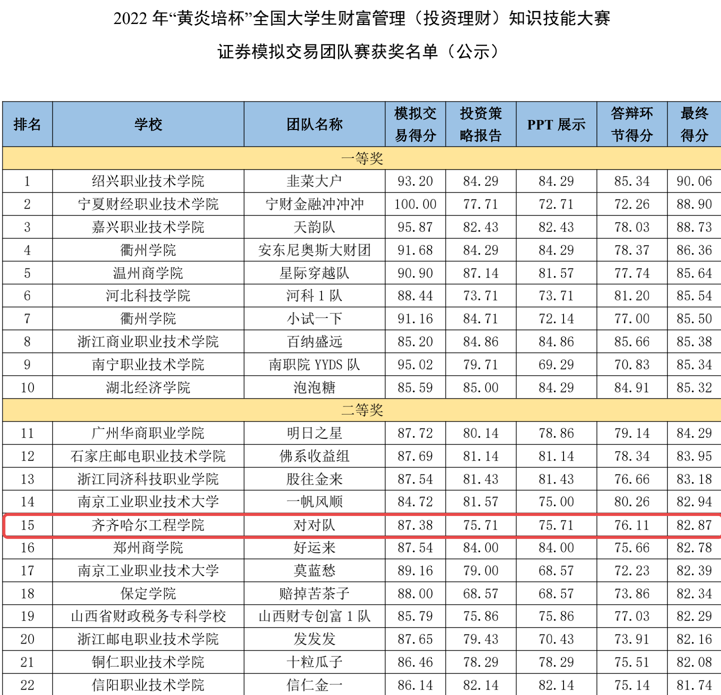 近日,2022年“黄炎培杯”全国大学生财富管理(投资理财)知识技能大赛组委会传来喜讯:我校斩获团体赛二三等奖和两项个人三等奖,三人获优秀指导教师荣誉。