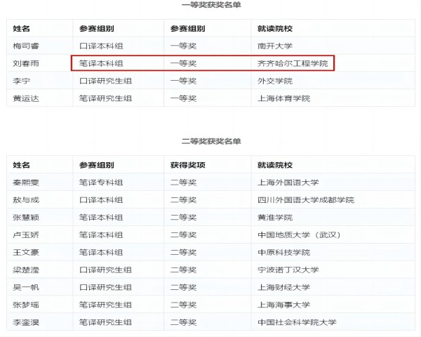 近日,第五届ETTBL全国商务英语翻译大赛组委会传来喜讯:我校英语专业刘春雨同学在本次翻译大赛决赛中斩获笔译本科组唯一的一等奖,并获2000元奖金;彭季秋和史琳卉同学荣获笔译本科组优秀奖;教师郭慧莹荣获决赛优秀指导教师荣誉。
