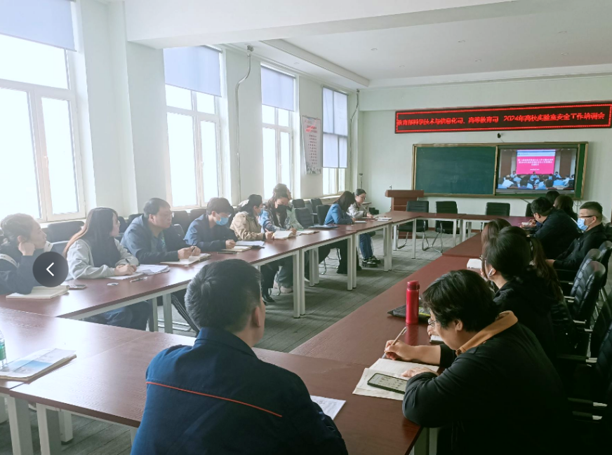 4月26日下午,教育部科学技术与信息化司、高等教育司举办第三届高校实验室安全工作专题培训班暨2024年高校实验室安全工作培训会,学校教务处组织各教学单位主任、副主任、实验中心主任和实验人员在图书馆608会议室收看培训直播。