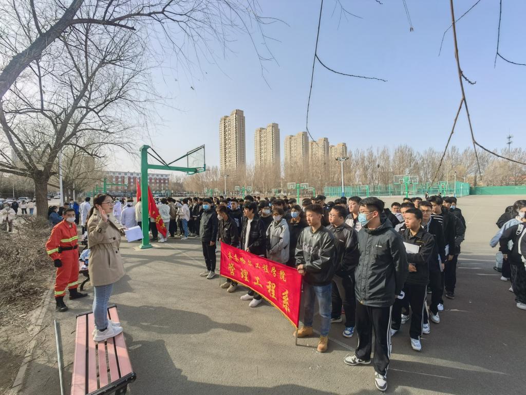随后,各系师生开始应急逃生疏散演练,学生分别进入到指定实验室内。待火灾发生信号发出后,大家沉着应对,按照规定路线,保持弯腰,距离地面一米以下姿势,遮住口鼻,俯身快速逃离火灾现场。整个演习井然有序,全体师生撤离到安全地带总用时约220秒。