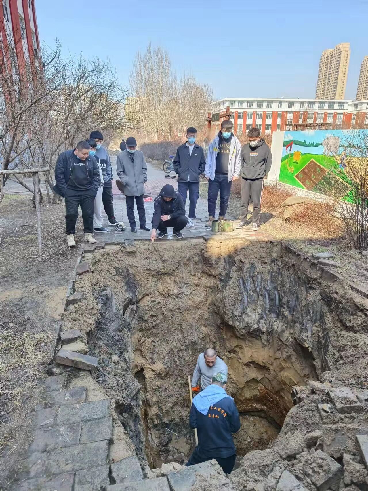 维修过程中,同学们积极讨论维修方案,多次请求下坑参与操作。观摩后。钟老师还为同学们围绕本次抢修工作布置作业,要求同学们查找资料讨论与这次维修方案不同的第二、三到N个方案。