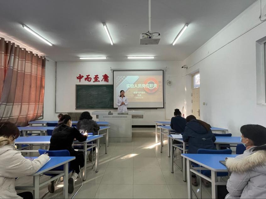 为进一步加强实验人员队伍建设,2月9日上午,健康与护理系在一号教学区1215教室组织召开了实验人员培训开班式。本次活动由健康与护理系教学副主任张苗主持,大健康教育实训教学中心主任张晓波及全体实验人员参加。