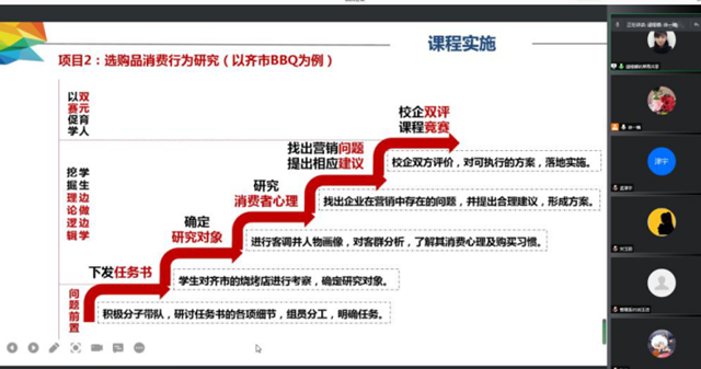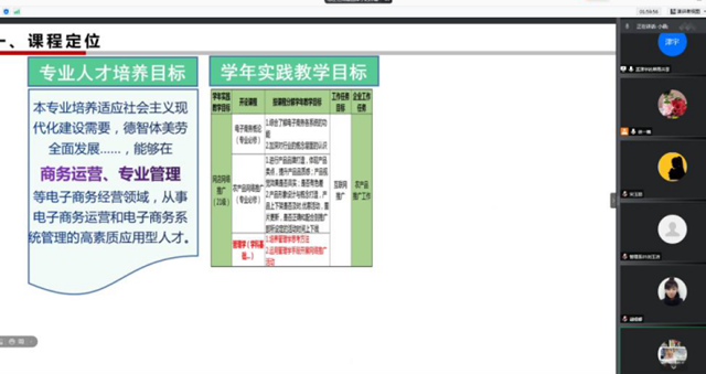 刘玉洁:电子商务项目管理课程在明确课程定位基础上,依据课程教学目标生成二级矩阵、三级矩阵,并以淘宝直播项目的一个任务为例,分析了课程教学所需的人、机、料、法、环、测六要素,总结了课程评价的思路;逯娅娜:《消费者行为学》课程从便利品、选购品、特殊品、未寻求品等四个方面设计项目,同时在消费者决策模型的基础上对课点进行了重构,形成了行动体系,重复的是工作过程,不重复的是工作内容,同时从人、机、料、法、环、测六个方面对课程进行了管理,以确保教师教学和学生学习的质量;孙玲:《物流管理》课程从校企双育人的角度,重点突出企业专家在课程实施和课程评价阶段是如何参与到课程建设中,培养学生的专业实践技能;宋玉丽:结合程序设计基础课程从课程定位、设计、实施、评价四方面展开,在课程定位部分重点突出如何从支撑毕业要求指标点导出课程教学目标,在课程实施部分,在人、机、料、法、环、测机制下,进行课程实施。通过本次交流,对人机料法环测有了更进一步的认识;孟津宇:在课程实施部分,带入真实的5G视商产业园项目,从PDCA的角度具体阐述课程的整体实施过程,使课堂上乏味的讲变为有趣的学,从而激发学生对学习的浓厚兴趣;王文晶:在《管理学》课程实施中,依据专业建在支部上的做法,为课程实施提供了有效的制度保障。在专业导师团制度下建立本课程导师团实施细则,保证为专业输送积极分子。在课程导师团实施细则中,党员教师,党员辅导员,学生党员在课前、课中、课后三个阶段完成相应任务,发挥作用。