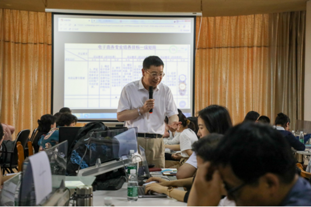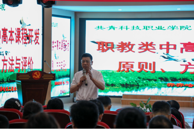 7日下午,在共青科技职业学院会议报告厅,曹勇安理事长首先对共青科技职业学院2位老师的说课汇报进行了点评,接着以《职教类中、高、本课程开发的原则、方法和评价》为题进行了课程建设培训讲座。在讲座中,通过对比课程与教学观的历史演变过程以及中美高等教育的发展过程,明确了课程建设的四要素——定位、设计、实施和评价。向共青科技职业学院的老师们展示了从培养目标到课点的课程开发流程,并给出了课程建设的“抓手”——三级矩阵,通过三级矩阵的落实实现教师会做课程、能做课程。曹勇安理事长在讲座的过程中给老师们布置了“专业培养目标、课程的认识和理解、培养目标和毕业要求的异同、门课如何确定、门课的教学目标如何确定”五个课后作业。培训老师通过学习通软件提交作业。
