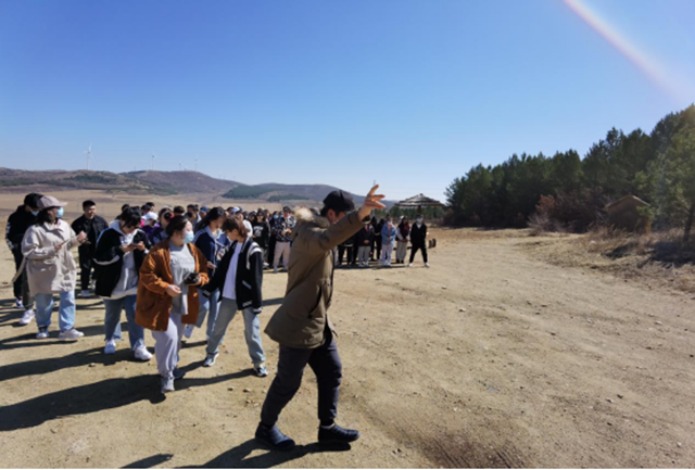 到达目的地碾子山后,74名学生被分为3个大队,大队又按不同专业分成14个小组。先后参观了花海、蛇洞山、兴安山等景点,领略碾子山的自然风光。