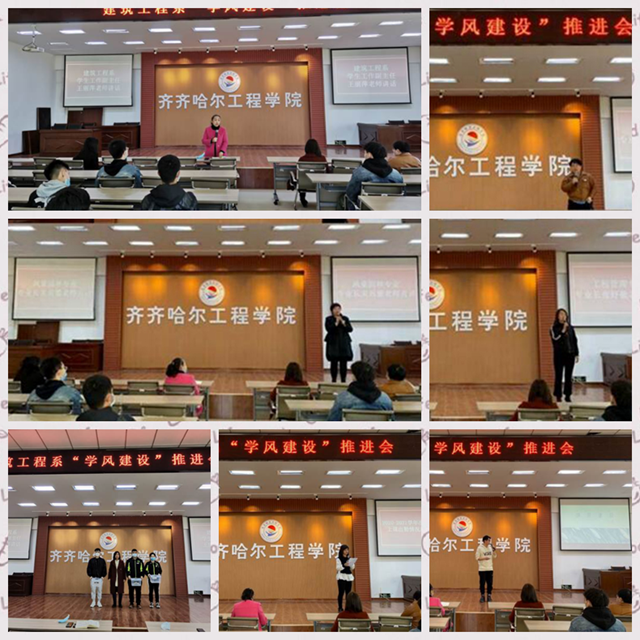 为进一步完善建筑工程系学风建设长效机制,推动学风建设,3月24日,建筑工程系在二号教学区2508会议室召开“学风建设”推进会,建筑工程系党总支书记、学生工作副主任王丽萍,教学工作副主任徐明,土木工程专业教师党支部书记钟美慧,工程管理专业教师党支部书记张好徽,风景园林专业教师党支部书记宋兴蕾,系全体辅导员,各班班长及学委参加会议。