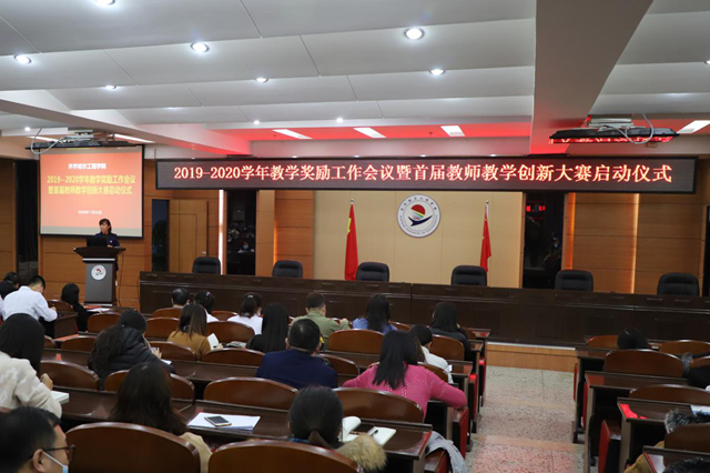 11月24日下午,学校采用线上+线下同步方式召开2019-2020学年教学奖励工作会议暨首届教师教学创新大赛启动仪式。校领导与全体干部、教学管理人员、教师代表在图书馆601报告厅参加会议,其他人员线上同步收看会议直播。