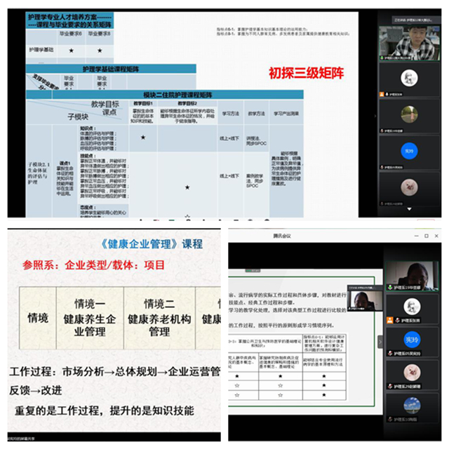 说课,是教师钻研教材、探讨教法、不断提高教学水平的一种方法,也是促进教师专业化发展的有效途径。8月19日上午,健康与护理系组织15位任课教师结合线上说课,交流分享落实课程四要素和开发课程三级矩阵的思路。