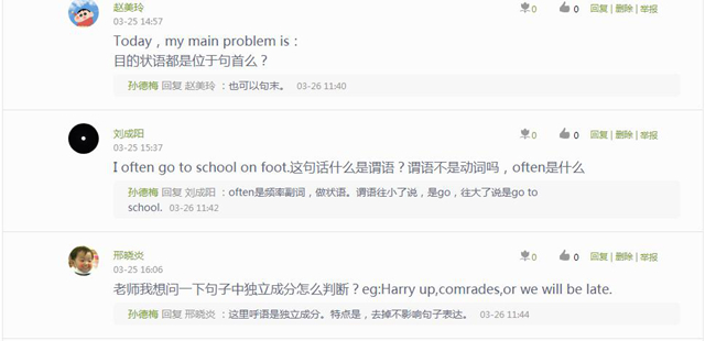 (三)课后阶段。一是鼓励学生思考,帮助解决其心中疑惑。学习英语语法最重要的一个方法,就是分析遇到的每一个英语句子是否符合语法规则,如果不符合,要提出理由是什么;如果符合,要能够进行分析。学生养成这个提问习惯,会非常有效地提高英语应用能力,所以教师积极鼓励学生提问,并尽快帮助学生解决心中疑惑。
