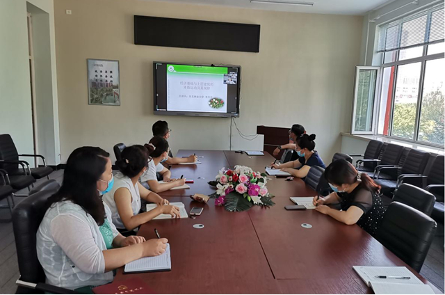 本次教学展示研讨活动,邀请东北林业大学马克思主义学院副教授李丹丹做《马克思主义基本原理概论》“经济基础与上层建筑的矛盾运动及其规律”专题教学展示,邀请哈尔滨工业大学马克思主义学院教授巩茹敏做《形势与政策》“从政府报告看‘非常两会’”专题教学展示。思政教学部全体教师认为两位老师的展示讲解脉络清晰、重难点明确、故事性强、语言生动,从中深受启发,并在教学展示结束后认真回味两位老师有关在线课程教学的心得分享,结合自己所任课科目和线上教学的经历及体会进行互动交流。