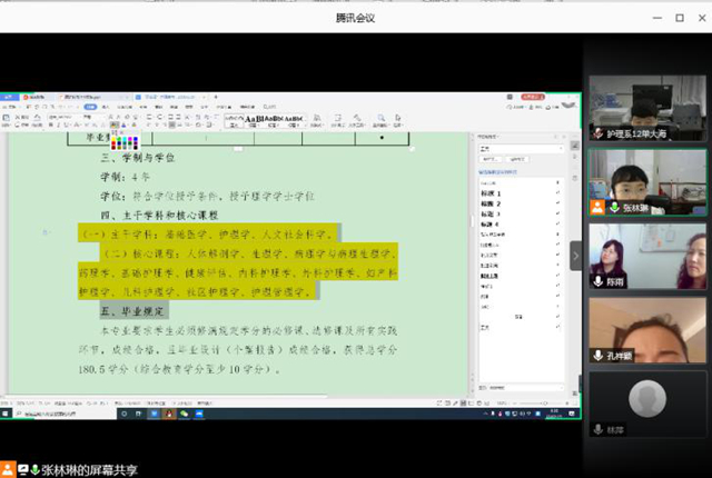 在论证过程中,各位专家对护理学专业2020版人才培养方案中的培养目标、毕业要求、课程设置、课程矩阵等内容,逐一进行论证并给出相应意见建议。