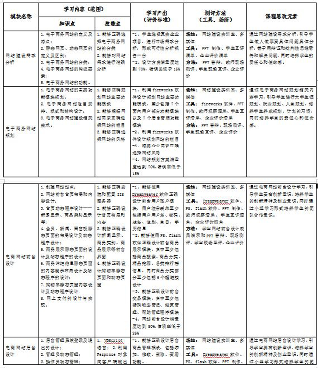 《电子商务网站建设》是电子商务本科专业开设的一门专业必修课,内容是如何设计和开发电子商务网站。通过教学使学生能够使用网络编程语言和数据库技术进行电子商务网站设计,能够正确分析电子商务网站建设对社会、健康、安全、法律以及文化的影响,并进行电子商务网站建设的改革与创新。