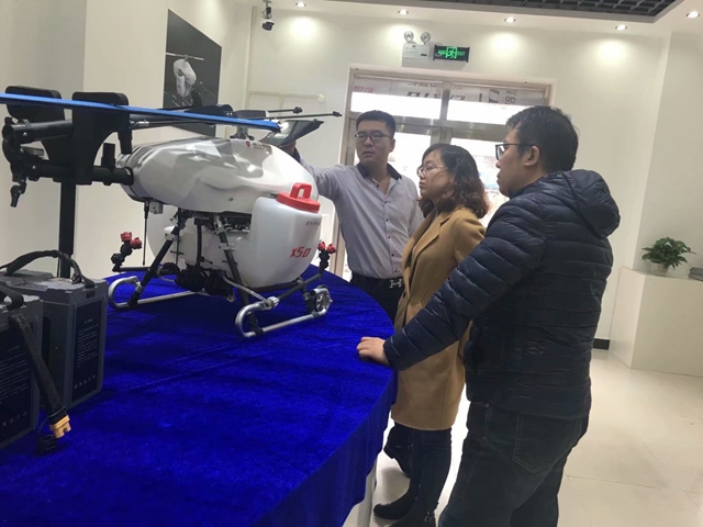 公司相关负责人热情地为李野专业长一行介绍无人机相关知识及应用情况。李野专业长一行通过参观进一步了解到无人机产品涉及到农业、工业、军事等方面,应用前景宽广,并且认为无人机涉及的相关知识和技能与电子科学与技术专业对口,非常适合本专业学生进行第三学期专业实习。