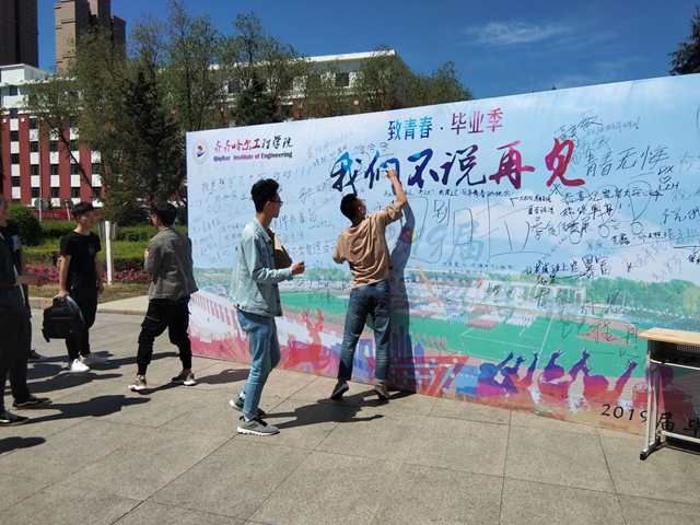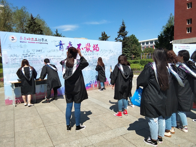 学院学生会将所征集到的700余张毕业生以“毕业”为题自主拍摄的照片,拼成了“我爱齐工程”的图案,展现出全体毕业生的浓浓爱校之情。