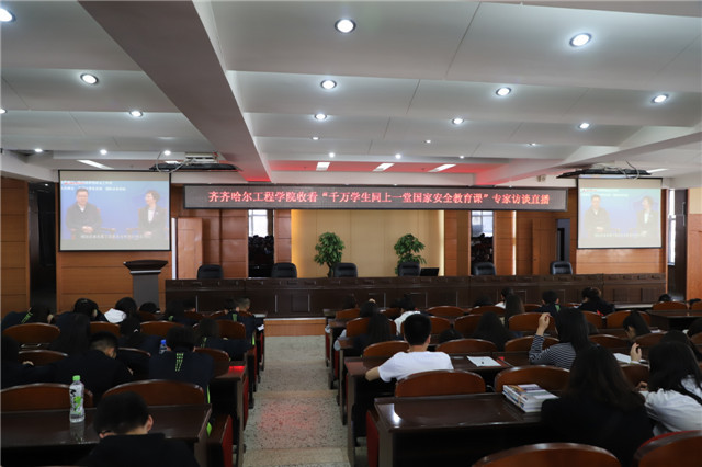 学院及时组织来自6个系的辅导员及学生共计240余人,在图书馆601报告厅集中收看了“千万学生同上一堂国家安全教育课”专家访谈直播。