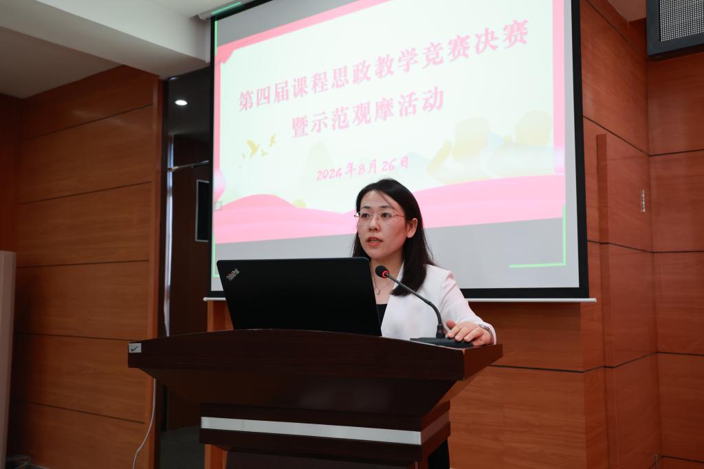 为深入推进习近平新时代中国特色社会主义思想进教材、进课堂、进头脑,8月26日下午,学校在图书馆601举行第四届校级课程思政教学竞赛决赛暨示范观摩活动。院长、党委副书记曹然彬,副院长张静,相关职能部门、教学单位负责人出席活动,全体教工线上线下观摩,活动由教务处副处长郝丽娜主持。