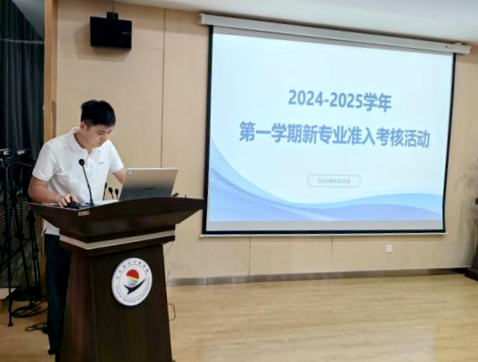为进一步规范新专业建设,加强对新专业建设的管理与服务,8月26日上午,学校在图书馆603南会议室组织开展对两个新专业的准入审核活动。副院长张静、各系主任、教学工作副主任担任评委。教务处副处长郝丽娜主持活动。