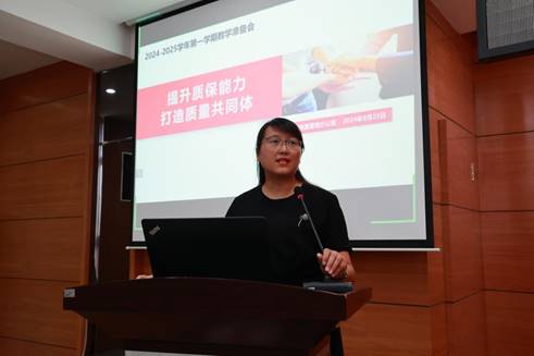 全面质量管理办公室主任孟艳辉以《提升质保能力打造质量共同体》为题,从课堂教学质量、课程建设质量、专业建设质量三个方面细致讲解了本学期的教学工作要点,要求各部门要强化质量意识,严格考核聘用;强化过程管理,加强过程指导;强化问题导向,重视立项研究。她强调专业负责人做好总设计师、总工程师、总监理师的“三总师”工作,完善标准和制度,以期共创共享质量文化,共同提升质量保障能力。