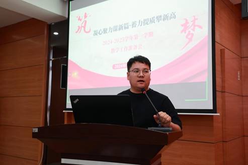 为总结2024年上半年教学工作成效,部署新学期教学工作重点,进一步深化教育教学改革,全面提高教学质量,8月23日下午,学校在图书馆601报告厅召开2024-2025学年第一学期教学准备工作会议。常务副院长陈景鑫、副院长张静出席会议,全体教职工线上线下共同参会。教务处副处长李文禹主持会议。