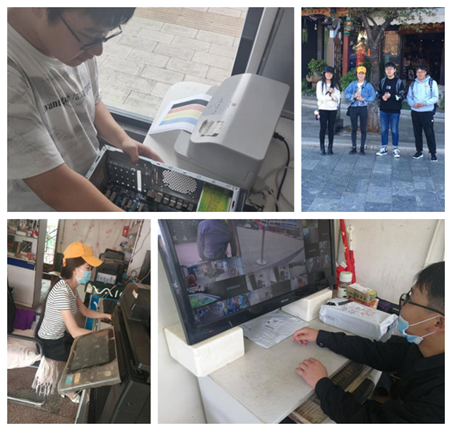 实习以来,公司技术人员热心指导我们处理一些常用的电脑问题,教会我们连接打印机,为新打印机加装驱动程序。在实习工作中,我主要是参与电脑硬件的一些维修,并提供上门技术服务,还去为外租打印机的企业连接好打印机并进行调试。刚开始外出提供技术服务时,我都是由公司员工带领,到后来就让我一个人去了,与客户交流能力得到了锻炼。石晓艳和王志菊同学在公司为顾客提供打印服务,他们根据顾客的要求在电脑中设计好格式和页面并打印出来,从中学习掌握了电脑相关软件的使用技巧,加深了对课堂上老师讲解的理论知识的理解,增强了动手能力。何明金同学实习了监控方面的工作,已经能够使用睿易APP做出一些简单的监控方案提供给客户,同时也参与了监控的现场调试与维护工作。