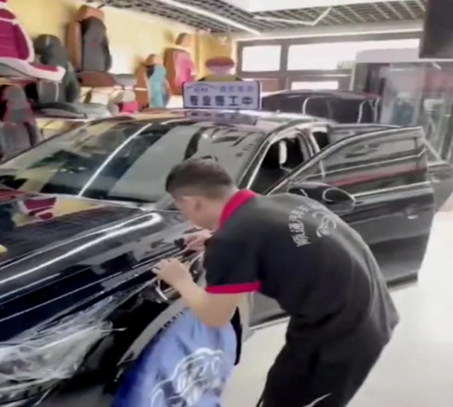 虽然在书本上学习过汽车保养知识,但第一次近距离学习贴车膜时,我才知道每一块车膜都是双面的,要以最简便的方式撕开膜。在贴的过程中不可缺少水,这里用的水是加入了洗涤液的自来水,起润滑洁净作用。我将膜撕开,附到喷水后的洁净玻璃上,再将水用刮板挤出。我告诉客户贴完膜后一个星期内不可升降车窗玻璃,避免膜没有完全干会产生褶皱或作废。空调温度不宜过低,加热的玻璃不宜马上沾水,防止玻璃爆裂。