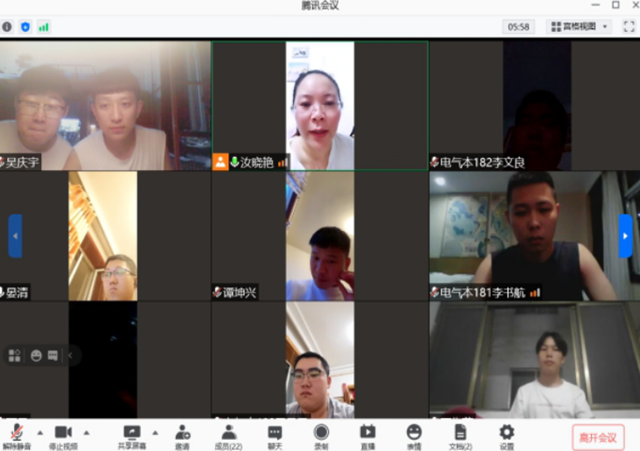 第三学期已经进入中期,为了深入了解第三学期学生的实习和学习情况,7月21日汝晓艳老师通过腾讯会议平台召开第三学期实习阶段性总结交流会议,电气2018级全体学生参加。