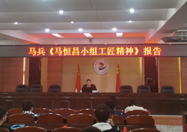 报告会上,马兵为全体学生介绍了马恒昌小组的发展历程、先进事迹,讲述了马恒昌曾组织的爱国主义劳动竞赛、民主管理、技术革新的故事,指出,“马恒昌小组的工匠精神,就是胸怀全局、艰苦奋斗的创业精神;奋发进取、开拓创新的劳模精神;团结协作、无私奉献的团队精神;勇于攻关、绝不放弃的爱国主义精神。他表示作为马恒昌小组的后辈,他和他的同事要学习马恒昌精神,坚守在车间一线岗位,向复杂的工艺挑战,在技术上不断创新。作为从事机械行业的前辈,他祝愿齐齐哈尔工程学院的学生成为祖国的栋梁之材。