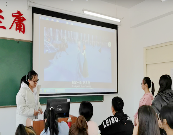 参赛小组选取配音影片,全身心融入剧情,对剧中人物的对白进行配音。选手们的配音不仅在发音上吐字清晰、准确,而且对人物的情感模仿得惟妙惟肖,带给同学们一场听觉上的盛宴。表演结束后,齐锐老师对本次活动进行了点评,鼓励同学们要多模仿、多学习。