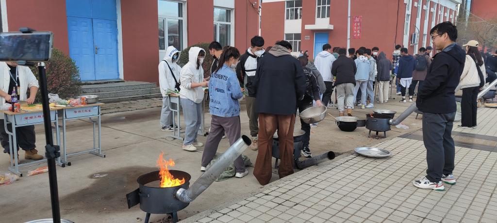 活动开始,易湖边成了同学们的“露天厨房”。“主厨”们在炉灶前各显身手,大秀厨艺,小组四人分工明确、配合默契,洗菜、切菜、生火、炒菜各司其职。选手们动作干净利落,从切配到用料,从下锅到摆盘,洗、切、煎、炒、炖,纷纷使出看家本领。现场香味弥漫,路过的老师和同学们都忍不住停下脚步,品尝后为自己喜欢的小组投票。