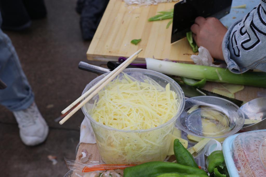 赛前,主持人讲明规则,即在规定时间内完成西红柿炒鸡蛋和青椒土豆丝两道菜品。