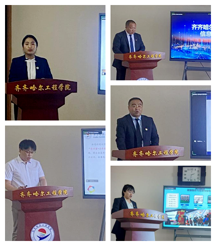 学校建筑工程系主任陈景鑫、机电工程系主任郭磊、管理工程系副主任刘贤鹏、信息工程系副主任孙晓芳、健康与护理系专业长张琳琳分别代表本系,以PPT的形式展示各系人才培养特色,展示毕业生风采。