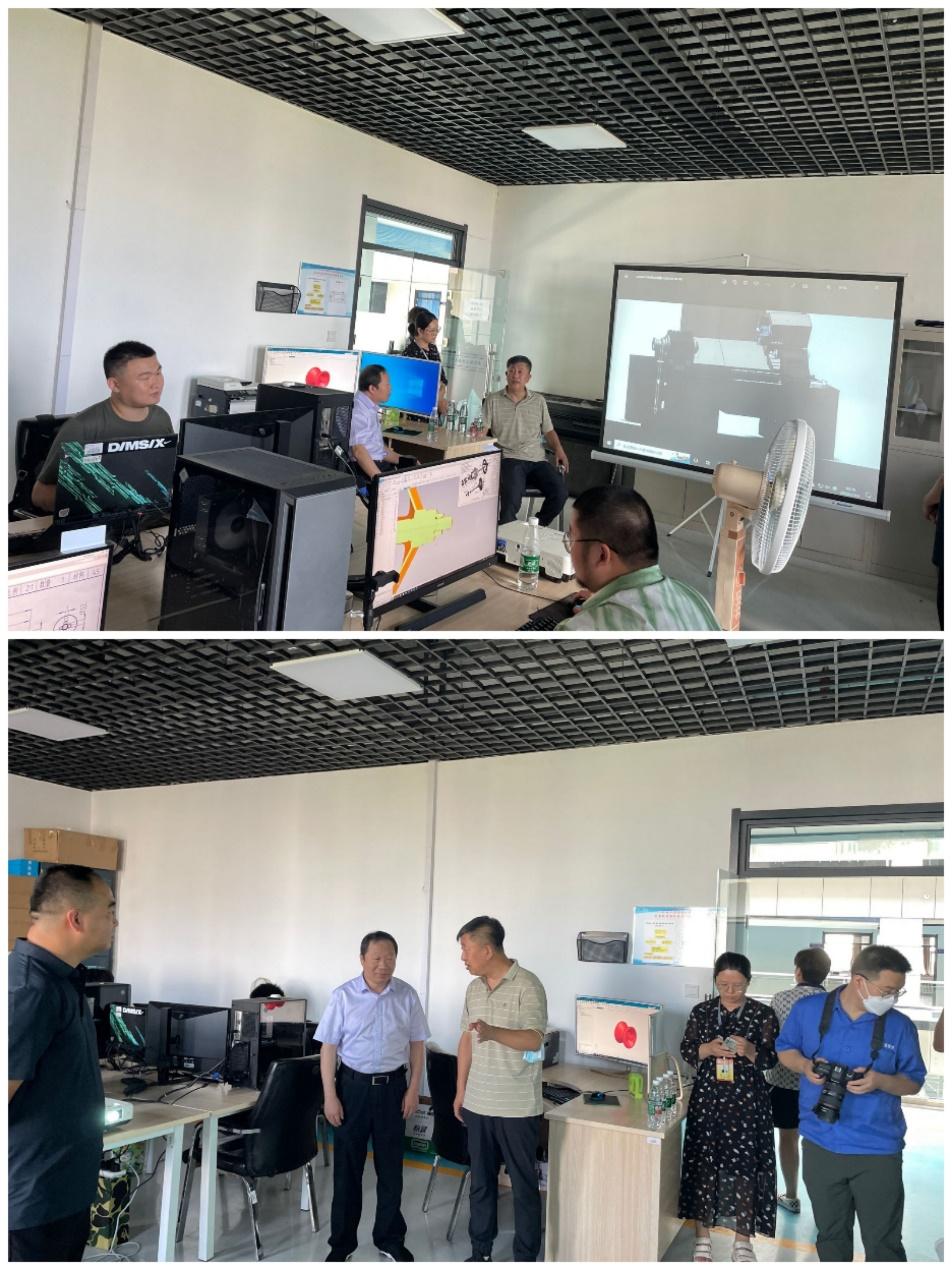 7月11日上午,齐重数控装备股份有限公司齐一智研院副院长姜辉及高级工程师刘银锋、赵树岩来校考察,洽谈产业学院项目合作事宜。7月12日成图工作室承接了来自机床产业学院的真实项目设计工作,学生的第三学期工作内容又提升了新的高度。7月19日上午,机床产业学院在先进成图室进行了“机床产业学院头雁工作室”揭牌仪式,机床产业学院院长曹然彬、齐重数控装备股份有限公司齐一智研院副院长姜辉出席仪式,机电工程系副主任甄彩霞及专业负责人和头雁团队全体成员参加活动。在仪式上曹然彬院长代表学校对姜辉副院长的到来表示热烈欢迎并陪同考察了机电工程系实验室的基础设施。并慰问了在先进成图室和实验室进行第三学期专业实践课程的学生。