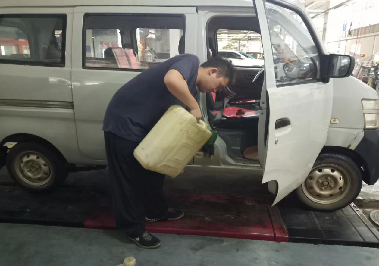 在四川攀枝花瑞豪汽车服务有限公司实习的王俊澄主要工作就是对汽车进行保养,倒换燃油等基本维护。