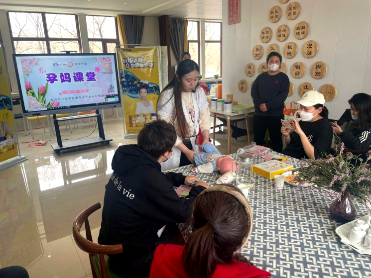 学校教师一行参与了产业园组织的孕妈妈课堂,与孕妈妈一起制作了DIY手工,并为孕妈妈讲解婴儿肠胀气的解决办法。在课堂上,产业园老师与健康与护理系教师一起解答了孕妈妈们关于孕期、母乳喂养的一些问题。