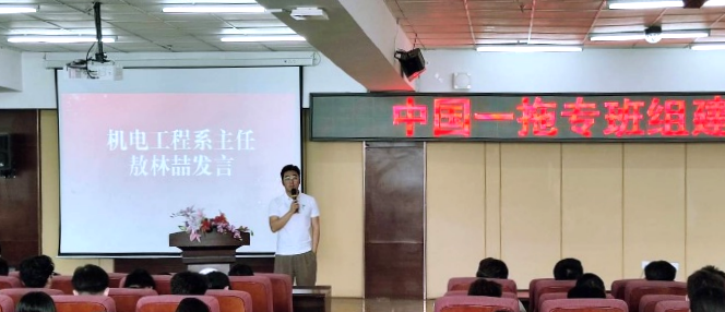 近日,为推进中国一拖产业学院建设,顺利开展中国一拖专班建设工作,机电工程系在图书馆601报告厅召开中国一拖专班组建动员会。系主任敖林喆、车辆专业负责人宋华、汽车服务工程专业负责人袁双宏、机械专业负责人高爱利、电气专业负责人刘微,以及带队教师苏海龙及系内各专业2020级学生参会。