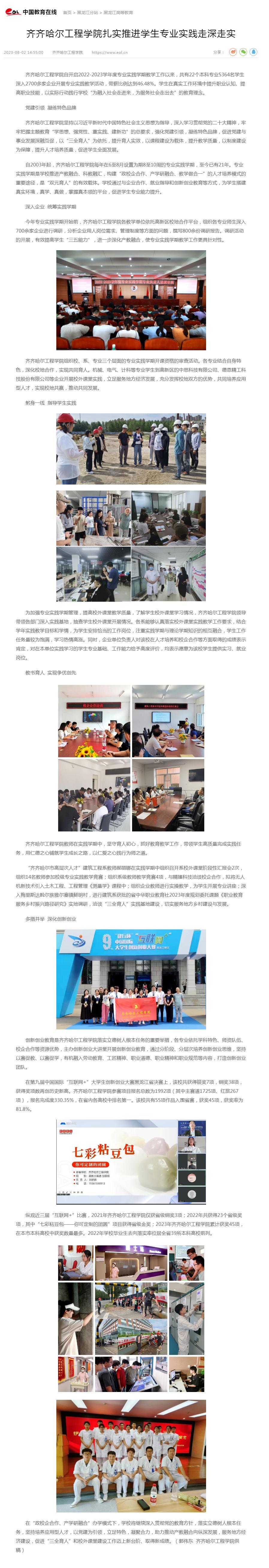 中国教育在线:齐齐哈尔工程学院扎实推进学生专业实践走深走实