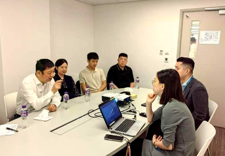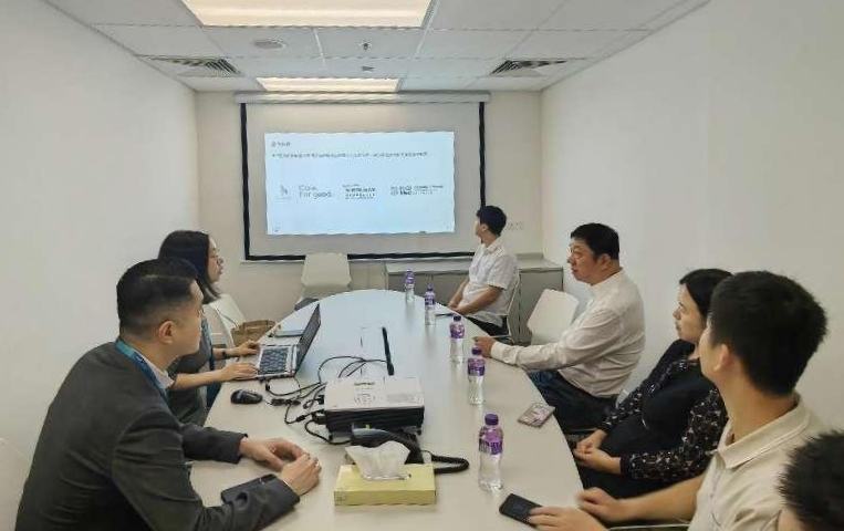 在会议室,业务发展部的工作人员介绍了医院发展情况、建设规模与各专科医疗中心的情况。曹理事长简要介绍了学校以及与多家医院合作的情况。