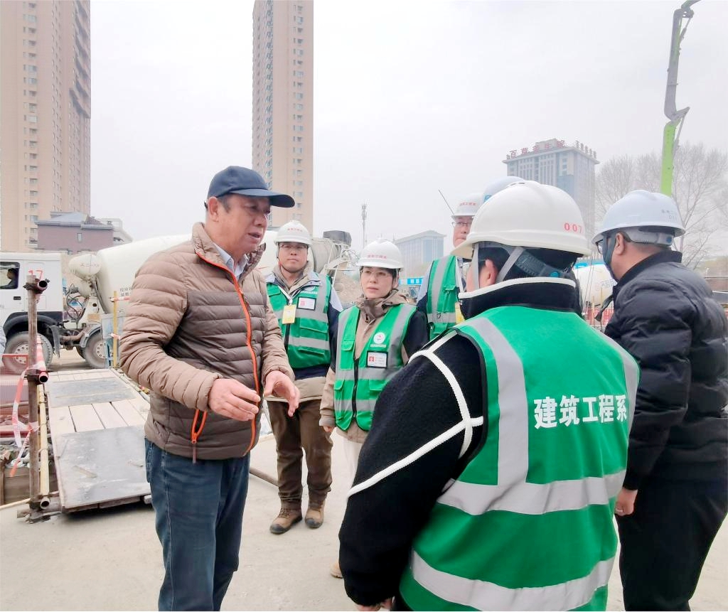 10月31日上午理事长曹勇安、学校基本建设办公室主任崔晓东来赴园北区校外课堂进行指导,中国建筑第二工程局第四建筑工程有限公司项目经理战乃超、中国能源建设集团东北电力第二工程有限公司项目经理王亮陪同。